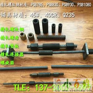 PSB500精轧螺纹钢,PSB785精轧螺纹钢.PSB830精轧螺纹钢.PSB930精轧螺纹钢.PSB1080精轧螺纹钢,规格主要有:Φ15.Φ20.Φ25.Φ28.Φ32.Φ36.Φ40.Φ50mm.常用的主要有25mm,32mm.配套锚具主要有:精轧螺纹钢螺母.精轧螺纹钢垫板.精轧螺纹钢连接器.